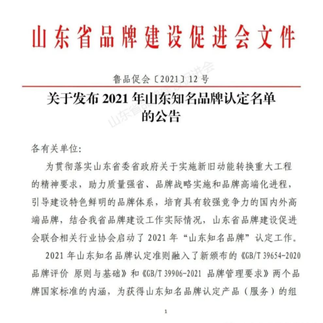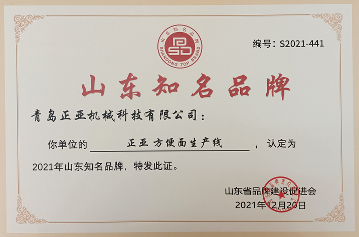 山東省品牌建設(shè)促進(jìn)會(huì)(英文簡(jiǎn)稱(chēng)SDCBD),是山東省品牌綜合管理機(jī)構(gòu)。為助力我省質(zhì)量強(qiáng)省及品牌戰(zhàn)略實(shí)施和品牌高端化進(jìn)程,引導(dǎo)建設(shè)特色鮮明的品牌體系,培養(yǎng)具有較強(qiáng)競(jìng)爭(zhēng)力的高端品牌,結(jié)合我省品牌建設(shè)實(shí)際情況,山東省品牌建設(shè)促進(jìn)會(huì)開(kāi)啟2021年度“山東知名品牌”認(rèn)定工作。此次品牌認(rèn)定依據(jù)融入了新頒布的《GB/T 39654-2020品牌評(píng)價(jià)原則與基礎(chǔ) 》和《GB/T 39906-2021品牌管理要求》兩個(gè)品牌標(biāo)準(zhǔn)的內(nèi)涵,為獲得山東省知名品牌認(rèn)定產(chǎn)品(或服務(wù))的組織取得更高的品牌榮譽(yù)奠定了基礎(chǔ)。我公司能最終取得認(rèn)定,說(shuō)明我公司 “方便面生產(chǎn)線”獲得了山東省及行業(yè)的支持與認(rèn)可,同時(shí),積極推動(dòng)了公司自主創(chuàng)新、自動(dòng)研發(fā)的進(jìn)程。