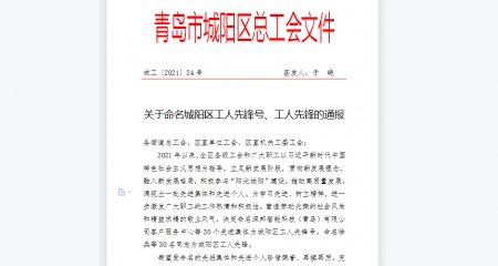 “城陽(yáng)區(qū)工人先鋒號(hào)”由城陽(yáng)區(qū)總工會(huì)授予,是以創(chuàng)一流工作、一流服務(wù)、一流業(yè)績(jī)、一流團(tuán)隊(duì)為核心的榮譽(yù)稱號(hào)。青島正亞機(jī)械科技有限公司于2021年12月22日正式獲得此榮譽(yù)稱號(hào)。